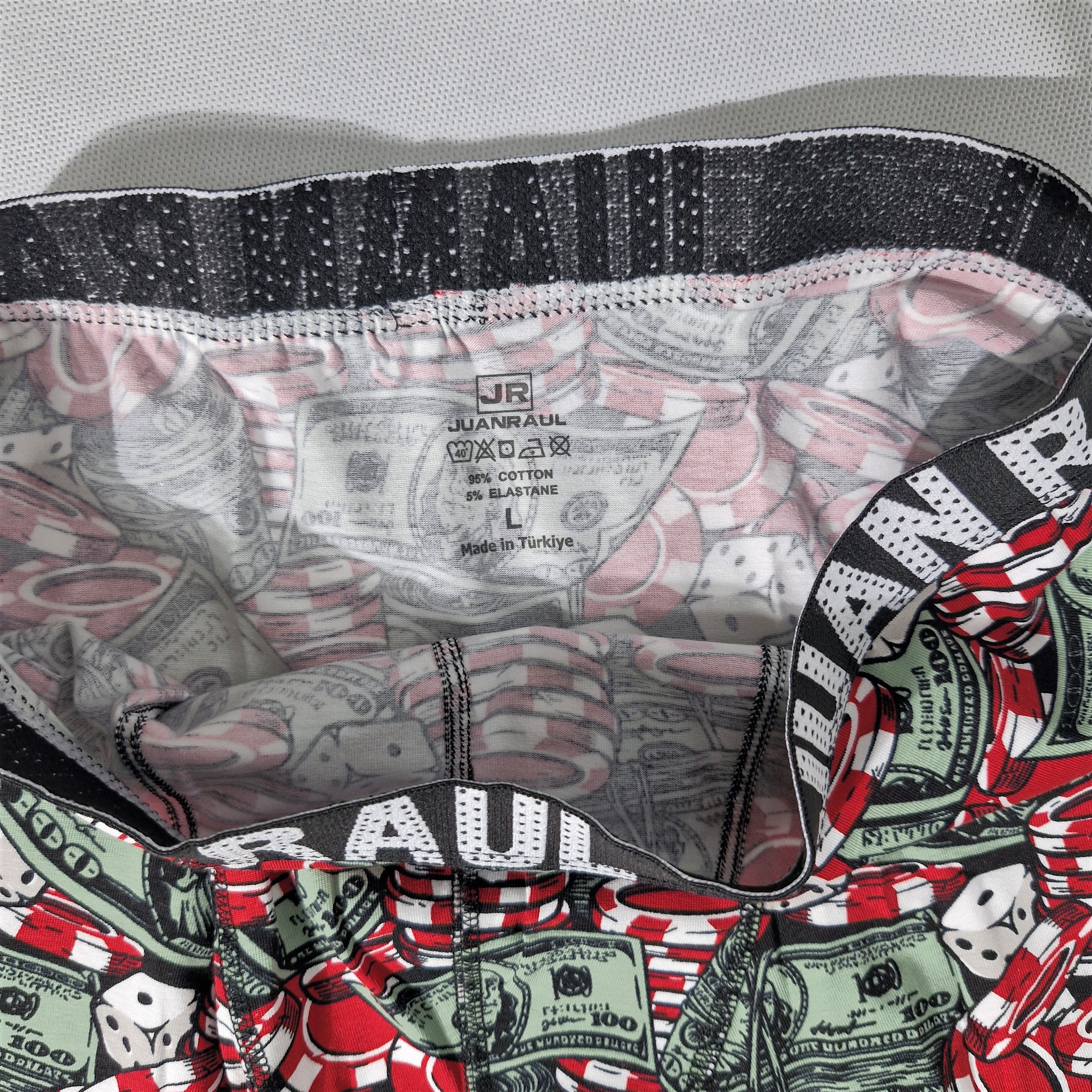 شورت مردانه محصول اورجینال ترک برند ژان رئال(JUAN RAUL) پادار طرح دلار و پوکر با پارچه پنبهای نرم و دوخت بادوام است. این مدل راحتی فوقالعاده دارد و برای استفاده روزمره کاملاً مناسب است. پارچه سبک و تنفسپذیر از تعریق جلوگیری میکند و کش کمر نرم آن بدون ایجاد حساسیت روی بدن مینشیند.