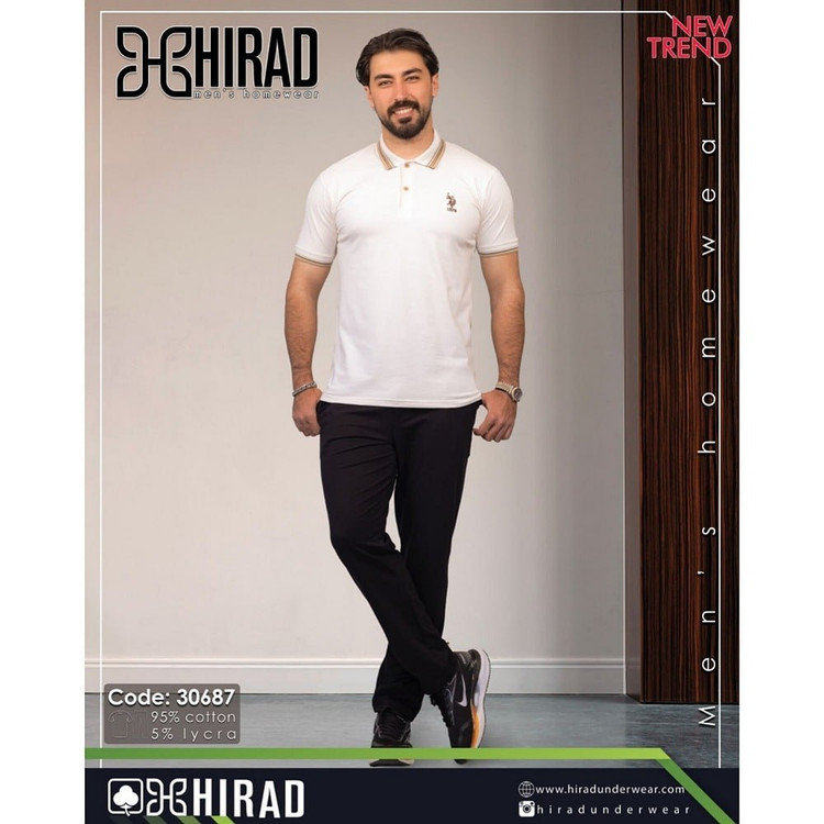 مدل تیشرت این محصول یقه دار و مدل شلوار آن دمپا ساده است.